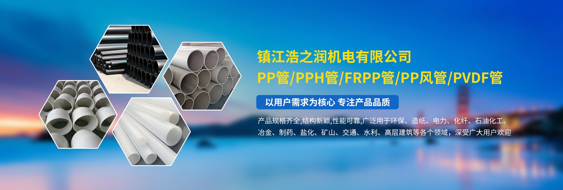 本公司主要生產(chǎn)PP管、PPH管、FRPP管、PP風(fēng)管、PVDF管,管道,管材,管件以及閥門配件等。產(chǎn)品規(guī)格齊全,結(jié)構(gòu)新穎,性能可靠,廣泛用于環(huán)保、造紙、電力、化纖、石油化工、冶金、制藥、鹽化、礦山、交通、水利、高層建筑等各個(gè)領(lǐng)域,深受廣大用戶歡迎。